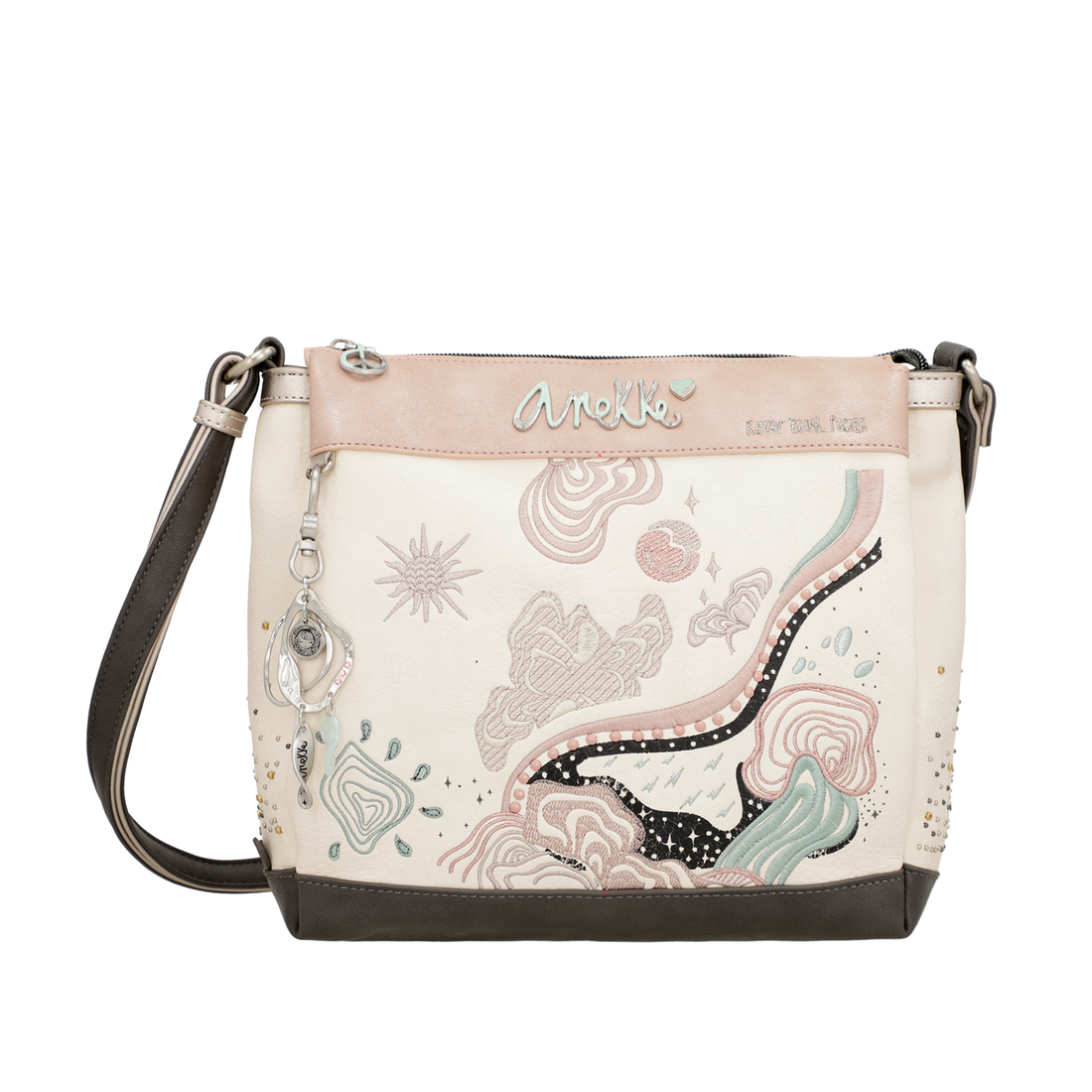 Această geantă menire cu curea de umăr face parte din colecția Anekke Menire, un tribut...