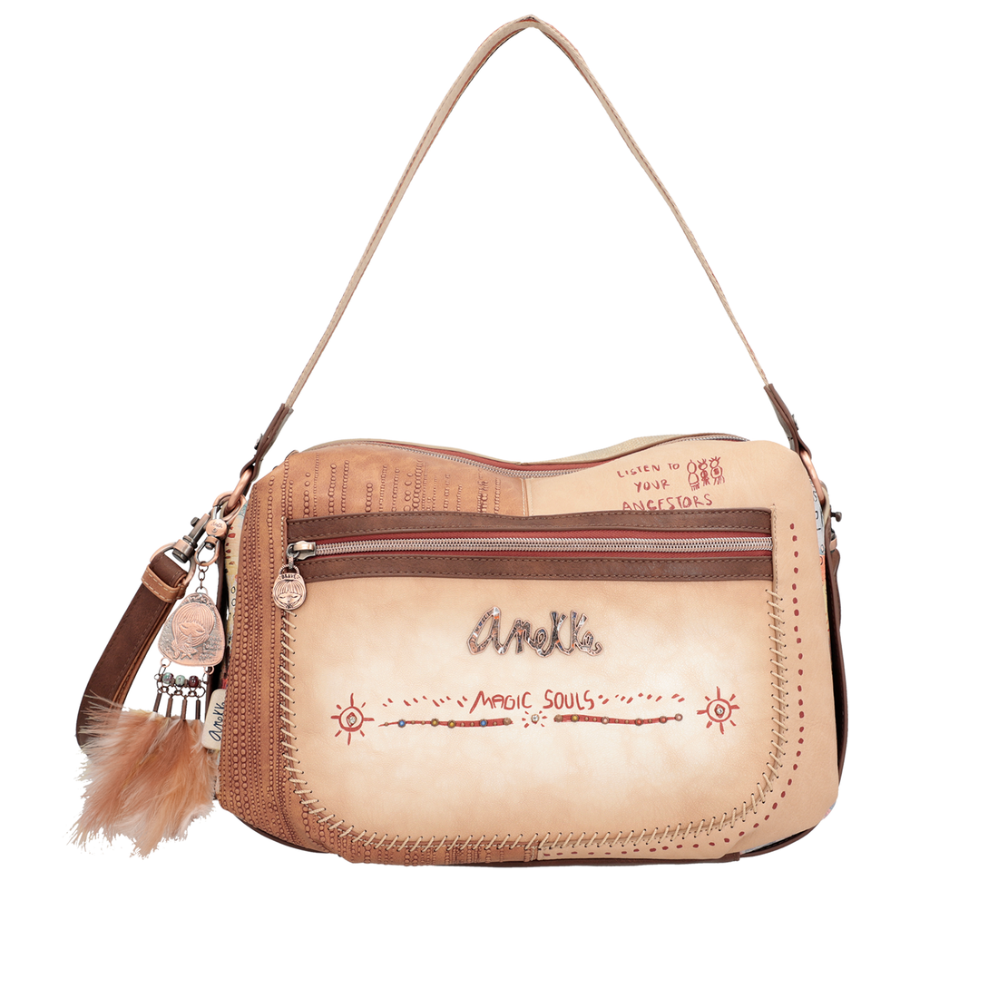Geanta Anekke Magic Souls de mărime medie, cu două compartimente închise cu fermoar, cu buzunare...