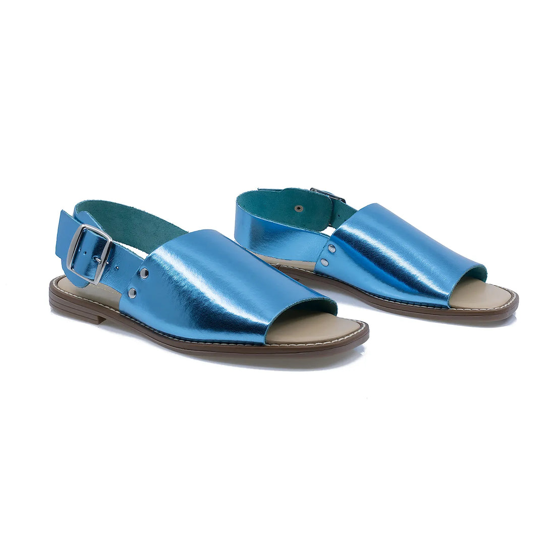 Sandalele dama model Roma, realizate din piele naturala albastra, sunt alegerea perfecta pentru un stil...