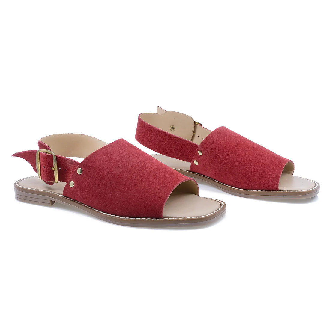 Sandalele dama model Roma, realizate din piele nabuc rosu, sunt alegerea perfecta pentru un stil...