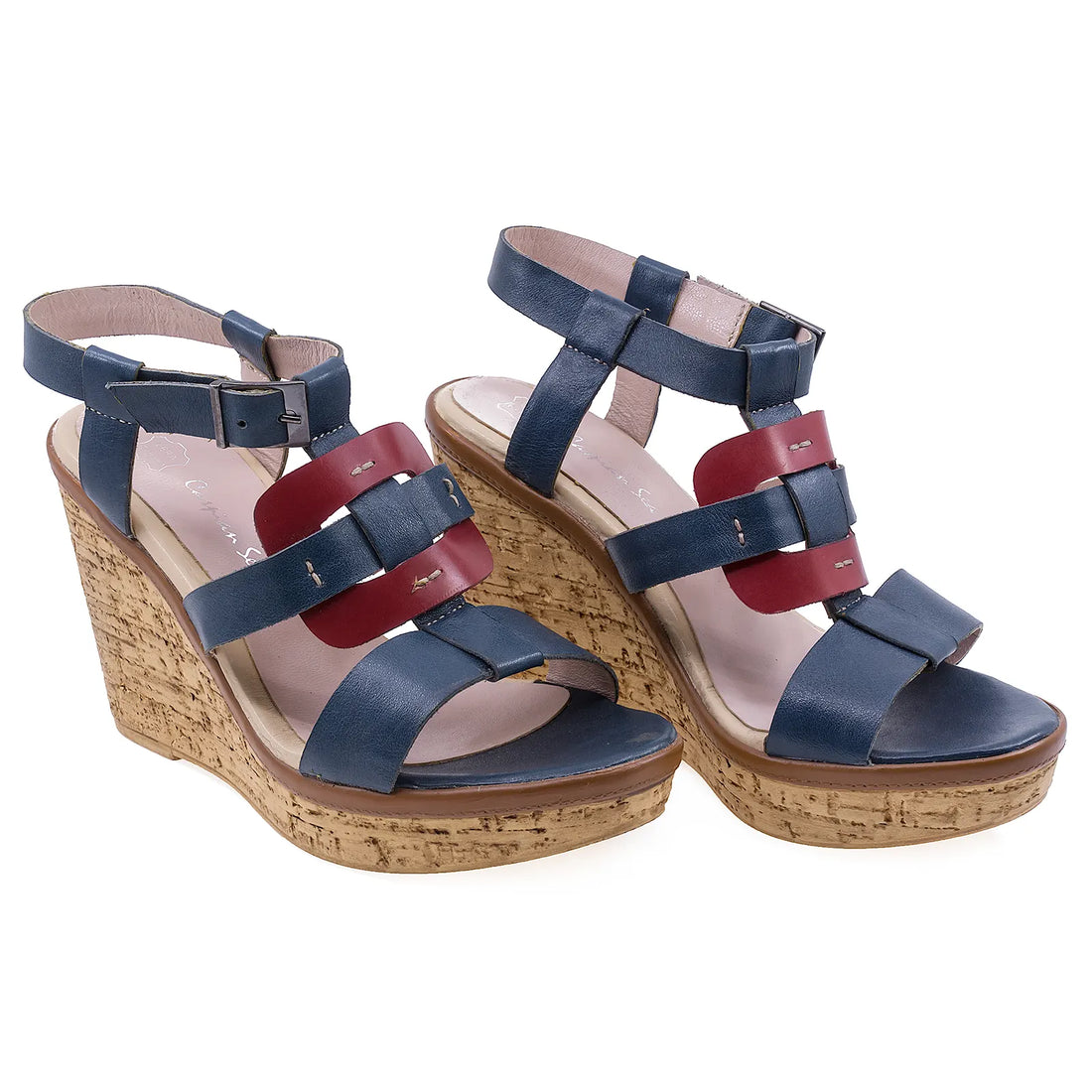 Sandale Dama, Caspian, Cas, Laura, Casual, Piele Naturala lacuita, Rosu/Bleumarin
