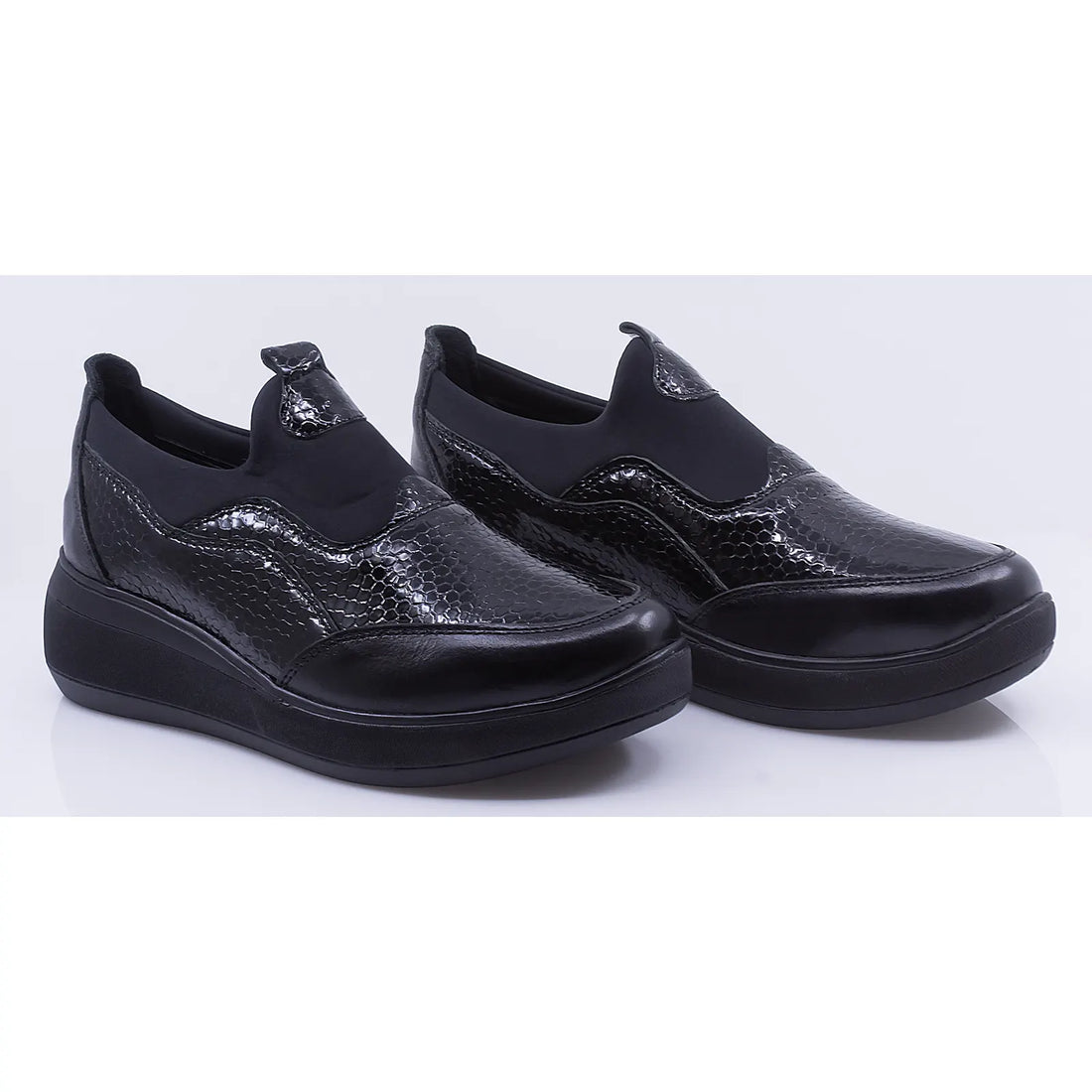 Pantofi dama casual piele naturala Caspian 1303 negru sidef