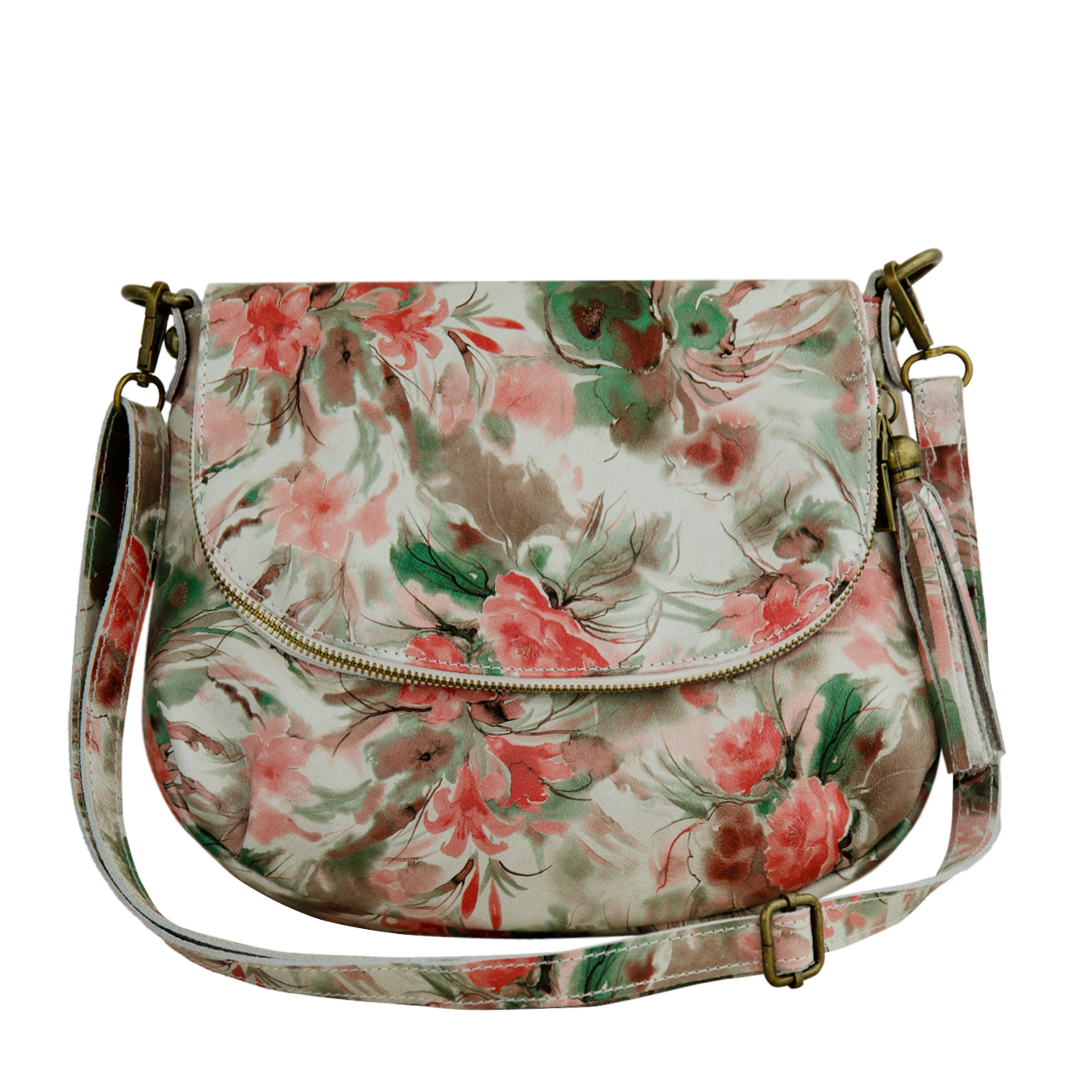 Geanta dama de umar, din piele naturala, floral.