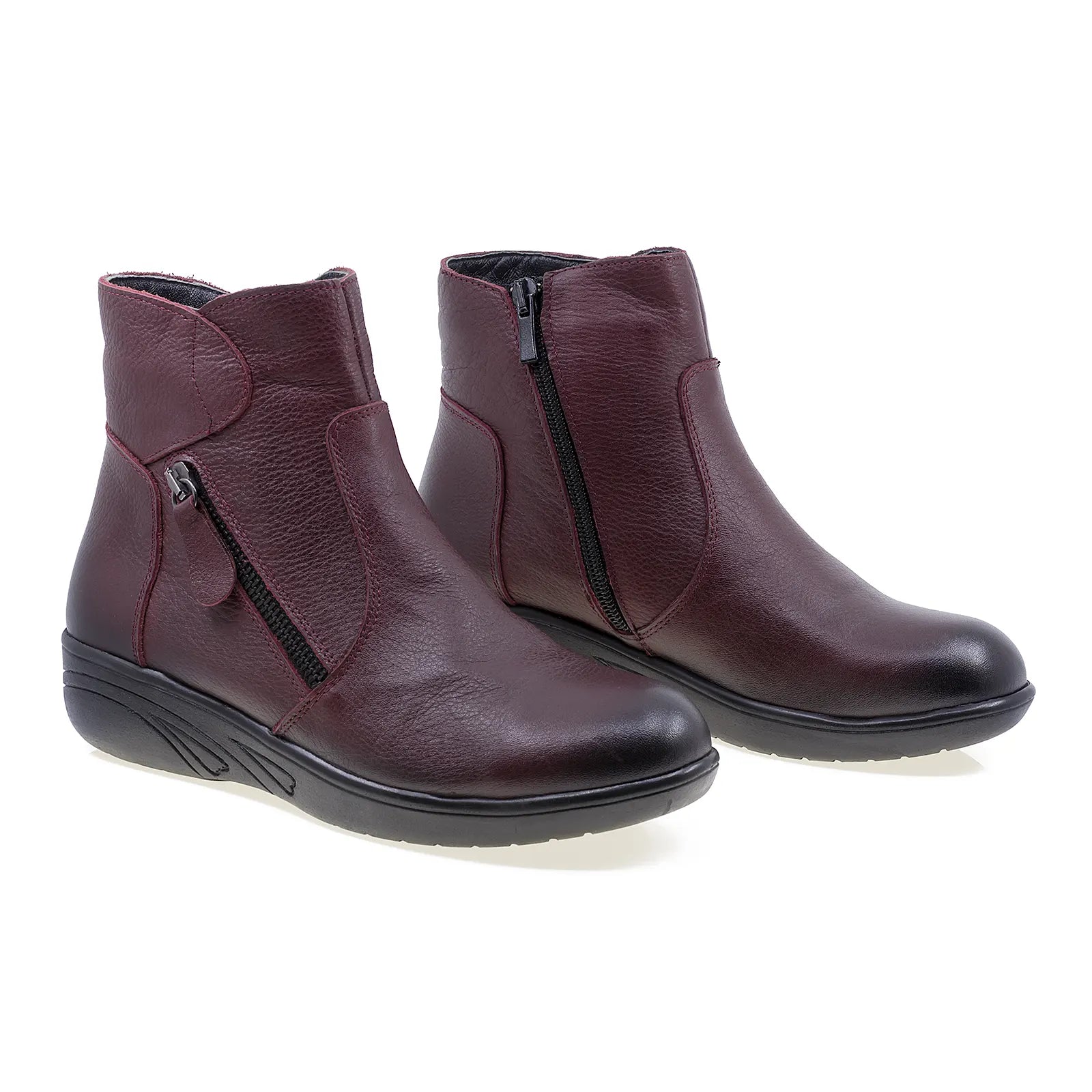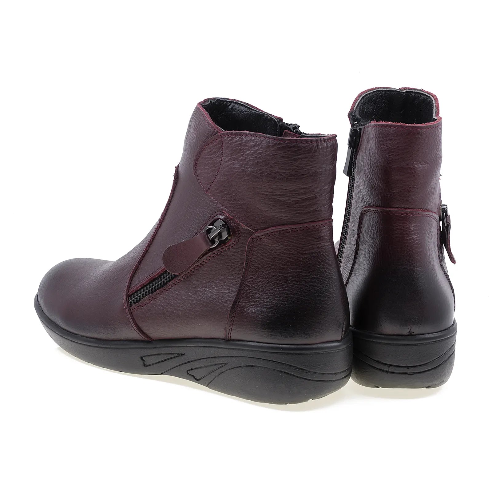 Ghete dama, Caspian, Cas-2717, casual, piele naturala, bordo